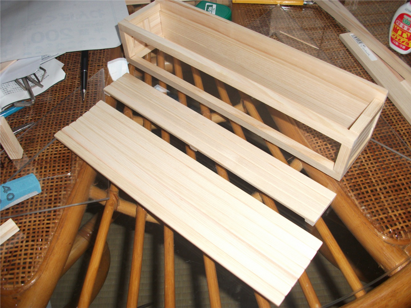 模型ではそれほど重いものは収納しませんが、実際なら…ということを踏まえて底板の補強をしました。