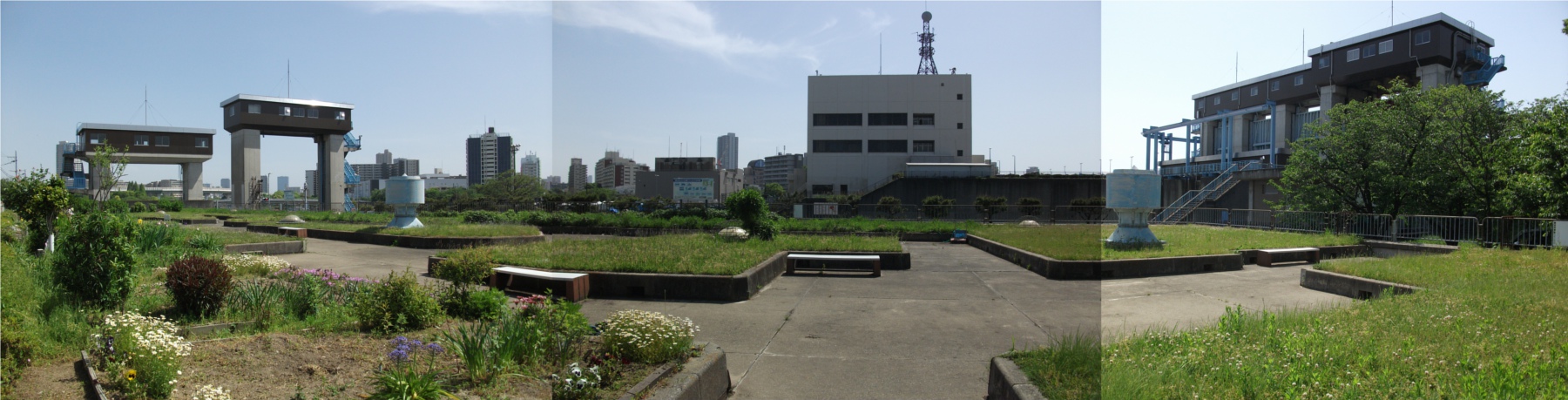 毛馬水門を見下ろせる位置にある公園だが、柵の近くまでは行けないので見下ろせない。