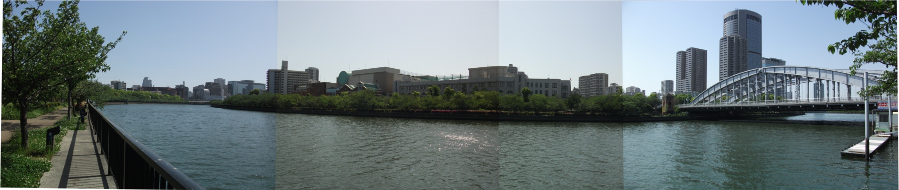 右端に見えるのは国道1号線にかかる通称「銀橋」。正式名は「桜宮橋」、大阪市北区天満橋と都島区を結ぶ。