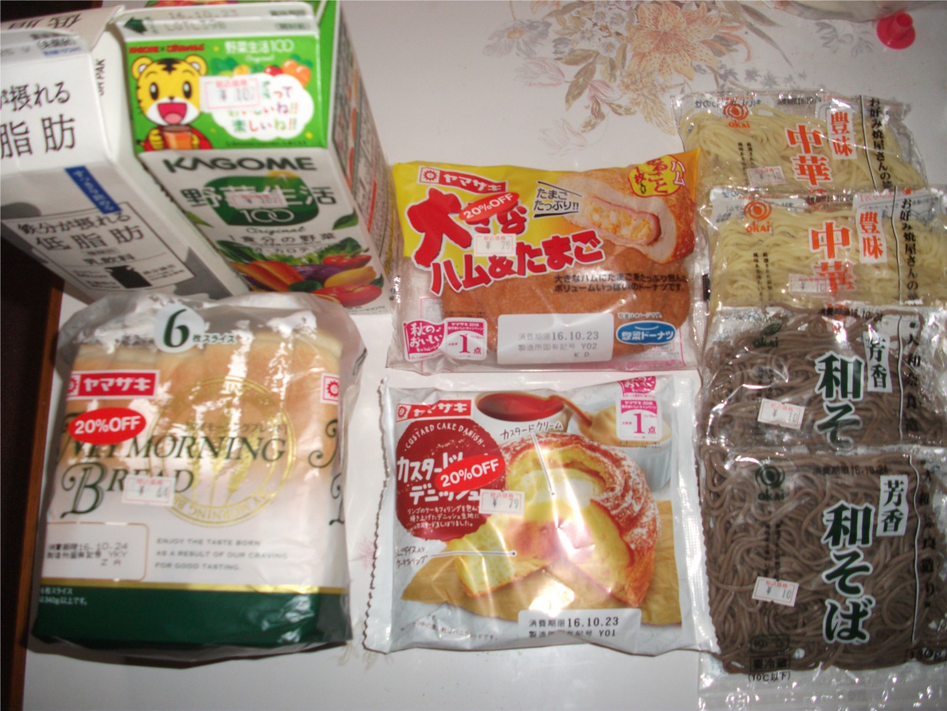 朝・昼はいつも大体こんなもんで、あとは食パン・麺類・ちょっとした野菜炒めくらいです。