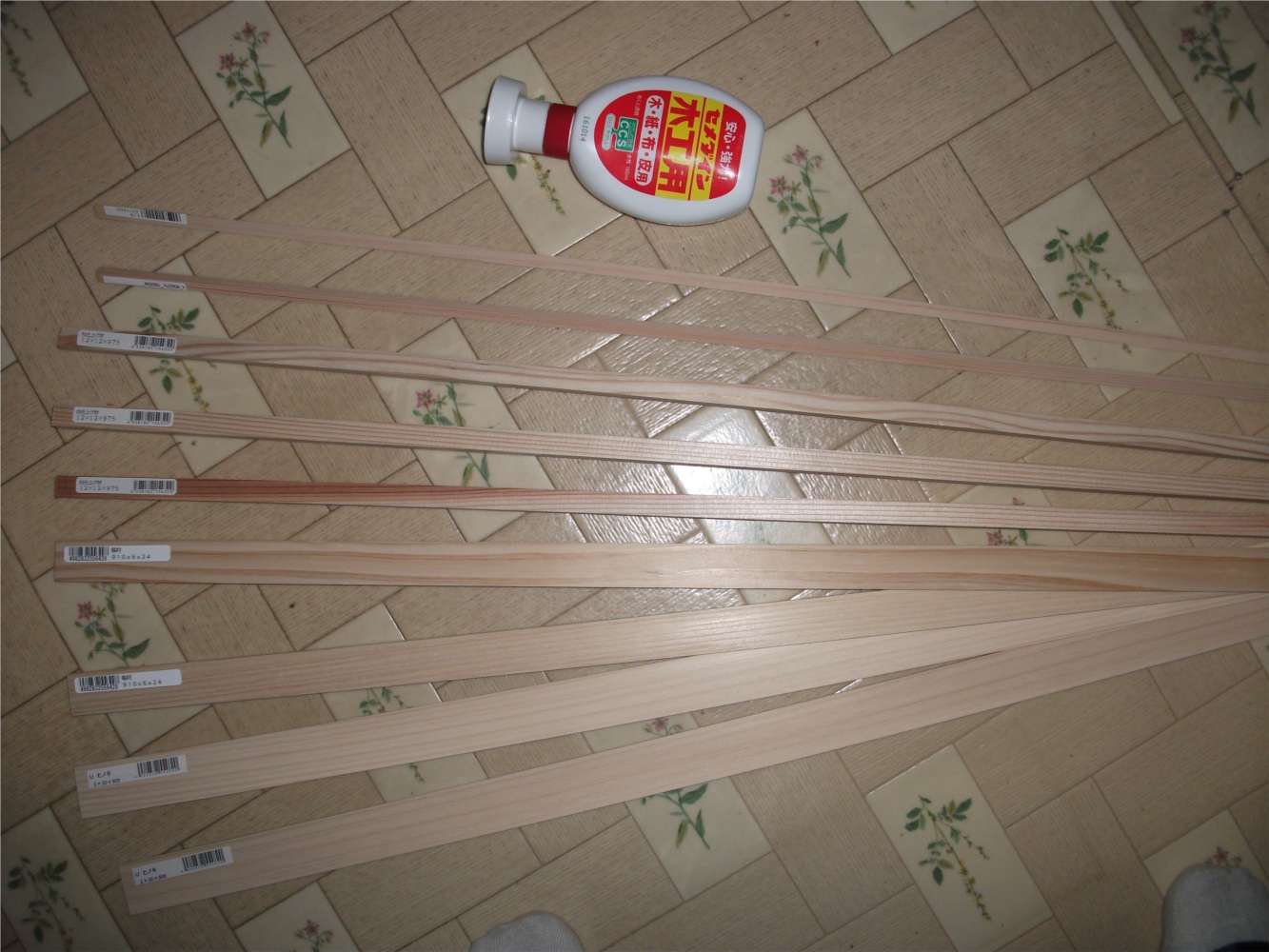 設計図は頭の中だ。悩んで悩んで数本の木材を買った。木工用ボンドは家にあるけど心もとないので大きめのを買ってきた。