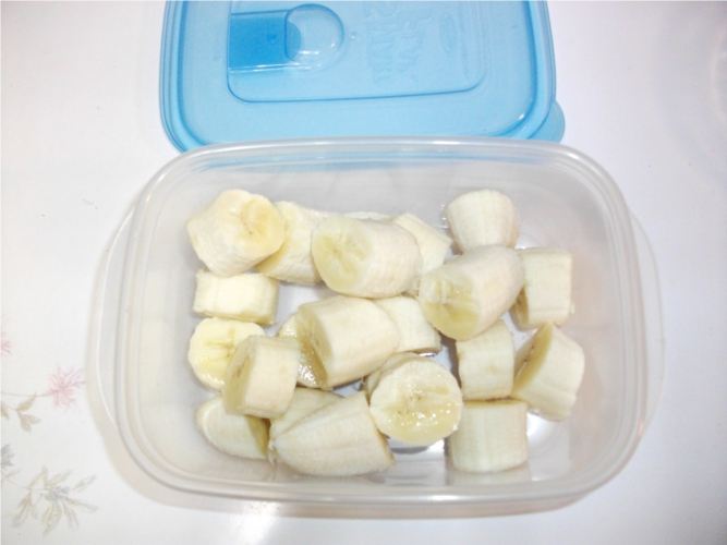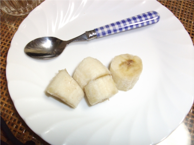 あ、そうそう… お供えのバナナだけ熟してきたので、一口サイズにして冷凍し少しずつ食べています。