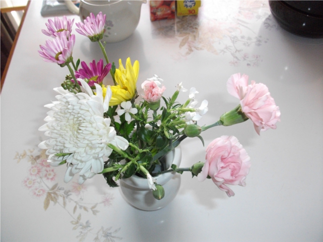 今日はお花を買って一週間になりますが、半分ほど枯れてきたので良いものだけ残し他は処分することにしました。