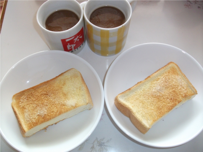 気がついたら午後2時で、とりあえず何か食べようと思ったけど食器も広げたままで何も出来ないので、残っていた最後の食パンとお水にした。