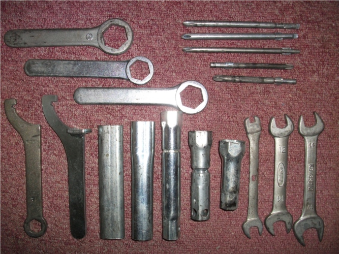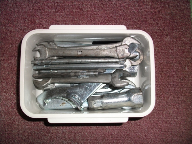 乾かす間に他の工具入れも一度全部出して拭き取ることにした。そして、バイクのおまけに付いてきた使わない工具をまとめて収納することにした。