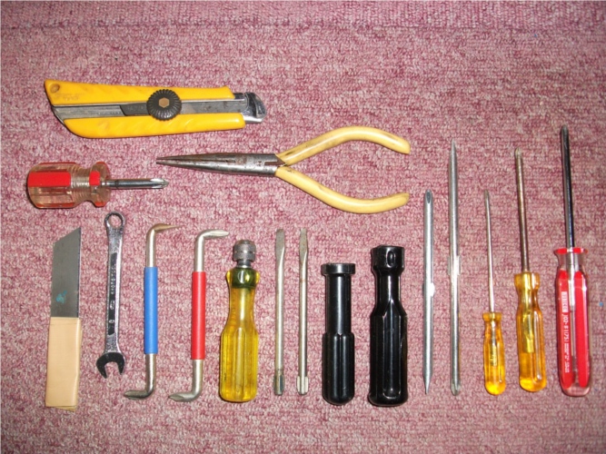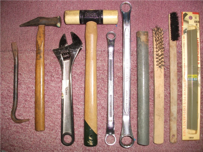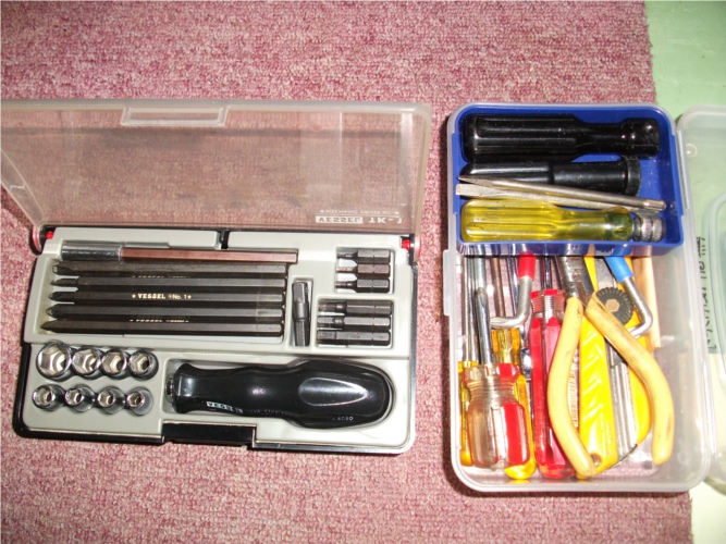 滅多に使わない大きい工具、時々使う中型工具、頻繁に使う工具、その他の小物類に分類してみた。