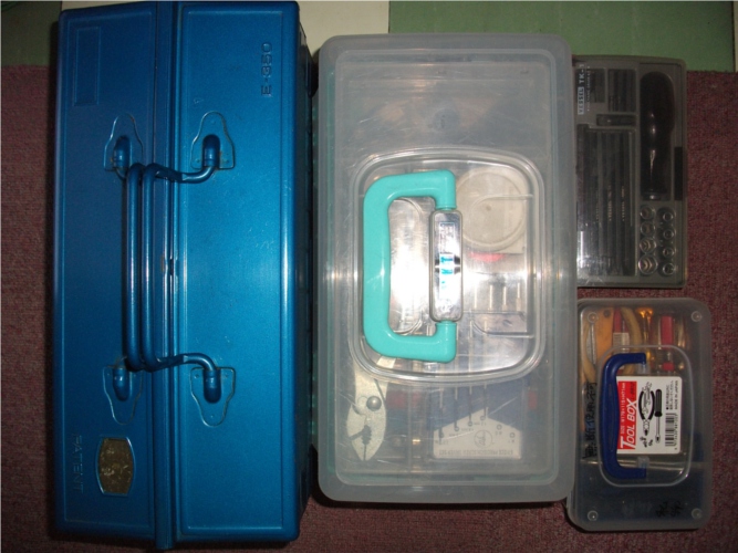 この他にも木工用工具があるし、時々しか使わない工具は初めに洗った大きな工具入れにまとめて保管する事も考えている。