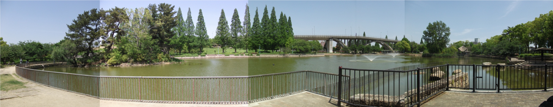 「城北公園」 大阪市旭区にある都市公園。公園の中心は池で、それをまたぐように菅原城北大橋が縦断している。