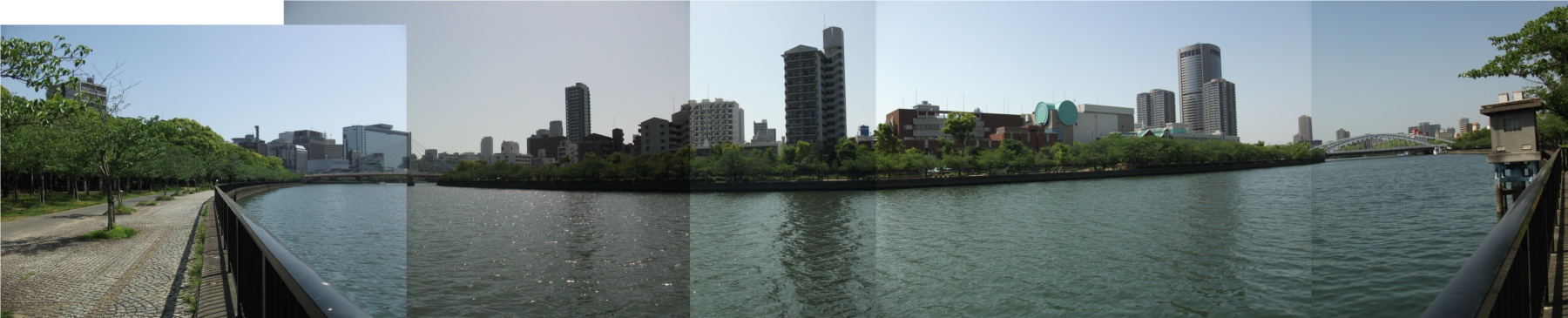 右端に見えるのは国道1号線にかかる通称「銀橋」。正式名は「桜宮橋」、大阪市北区天満橋と都島区を結ぶ。