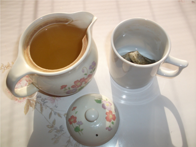 二番茶はぬるま湯で出す。三番茶は熱湯を注ぐ。ティーポットが小さいのでそれぞれ数回ずつ出しています。