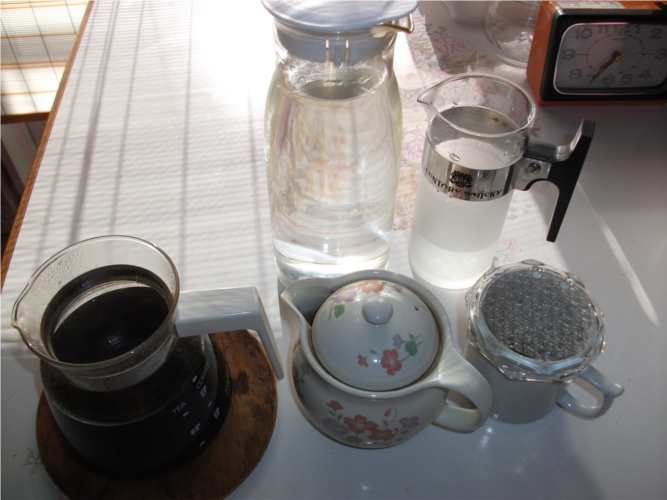 昨夜のうちにお湯を沸かしひと晩置いておいたものを容器に移し冷蔵庫に冷やしておく。