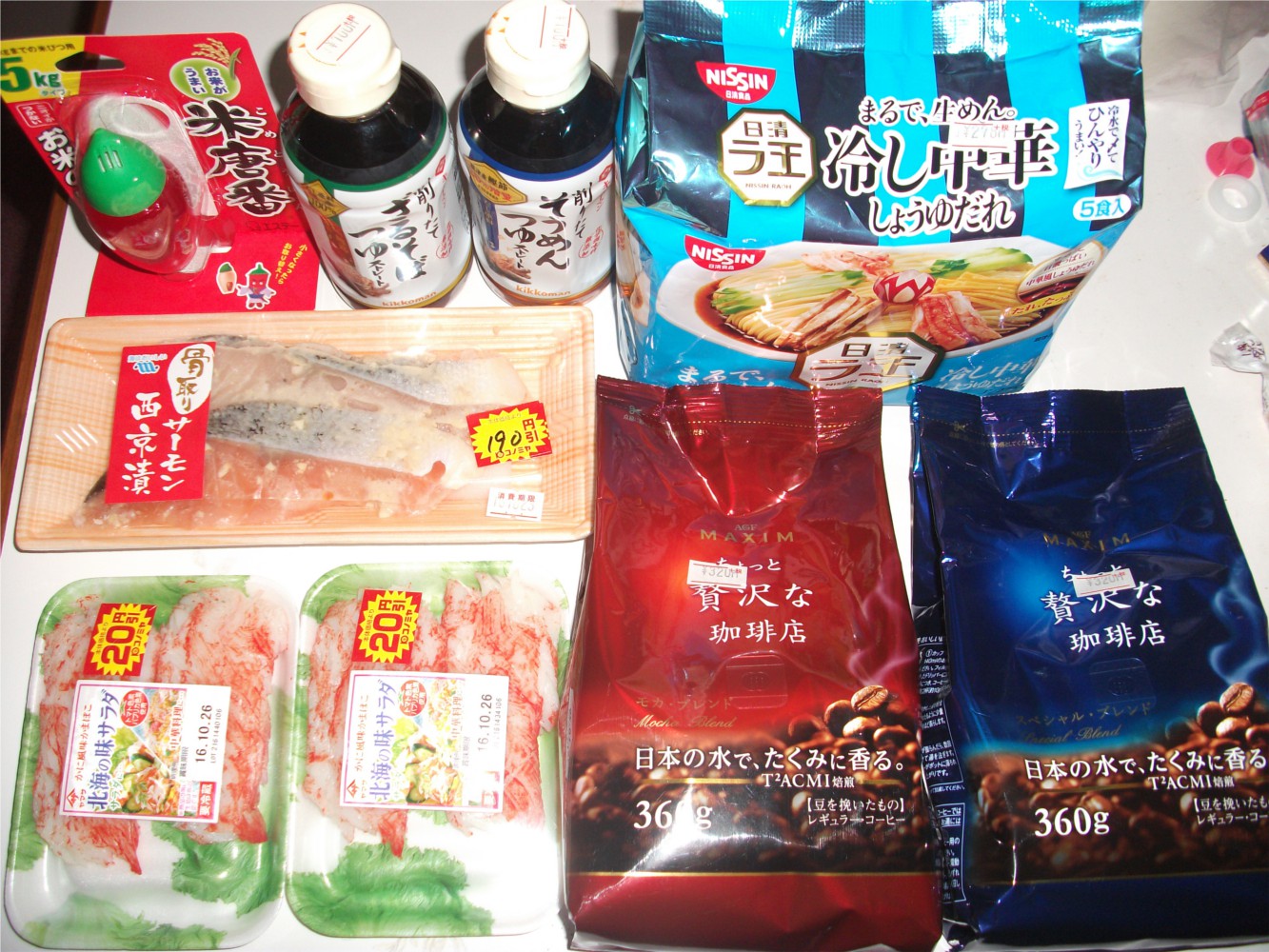 袋麺が10円だったので…(-ε-) 冷やし中華、ざるそば・そうめんつゆ、レギュラーコーヒーは必要ないんだけどなぁ…(-ε-)