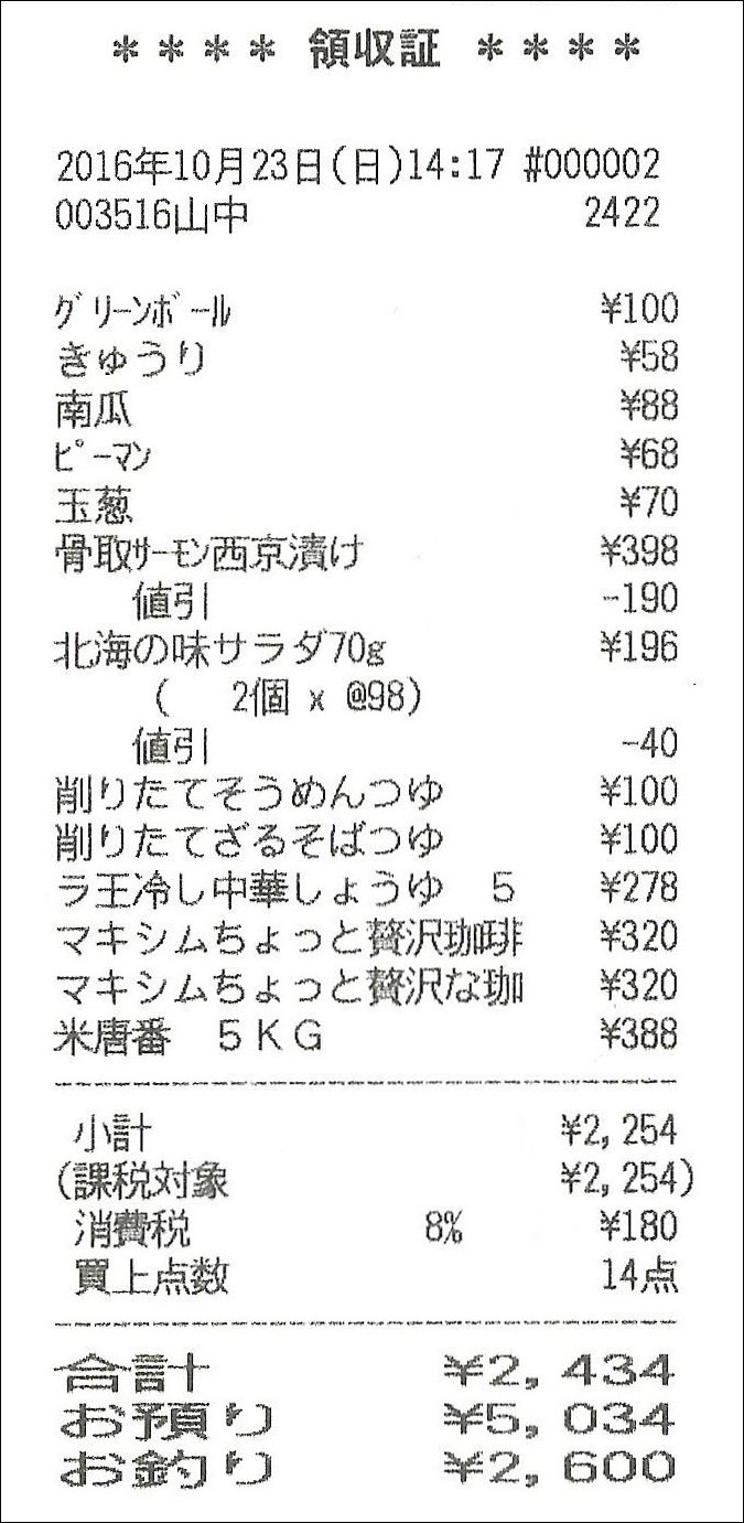 本日の食費 計:税込2908円